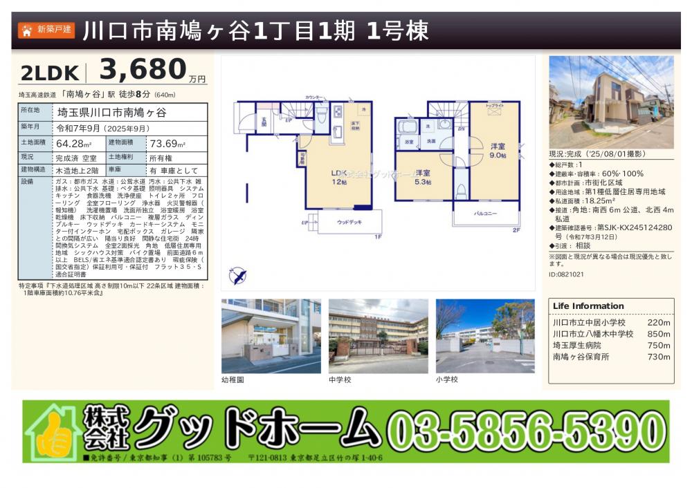 【新築戸建】川口市南鳩ヶ谷1丁目